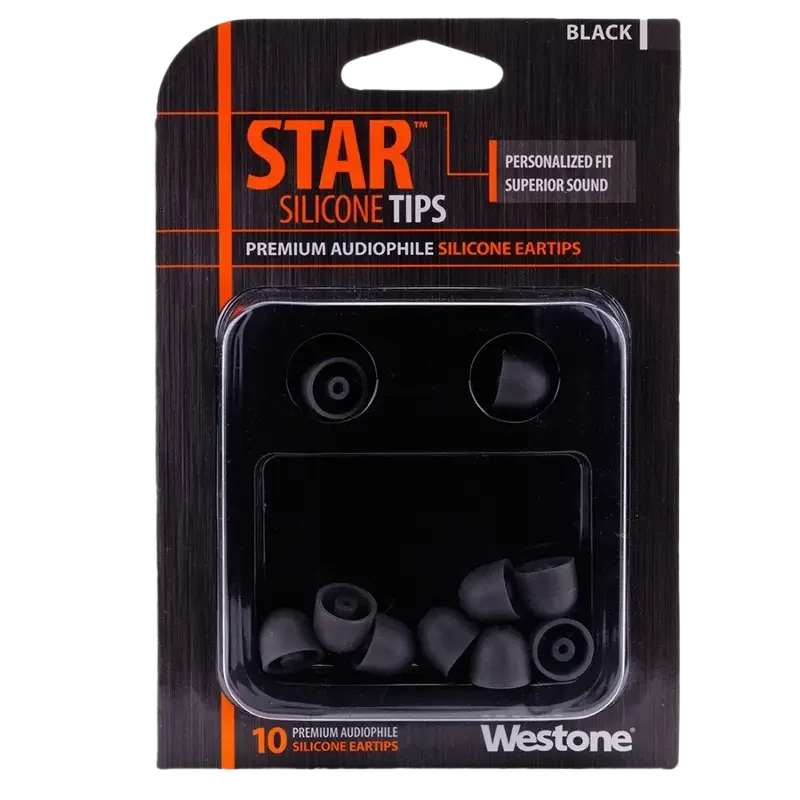 Westone Audio Star Silicone eartips with flexible design provide an individual fit for excellent retention, comfort and sound isolation. Specially designed flex-zones inside each eartip ensure they adjust seamlessly to the shape of your ear canal.